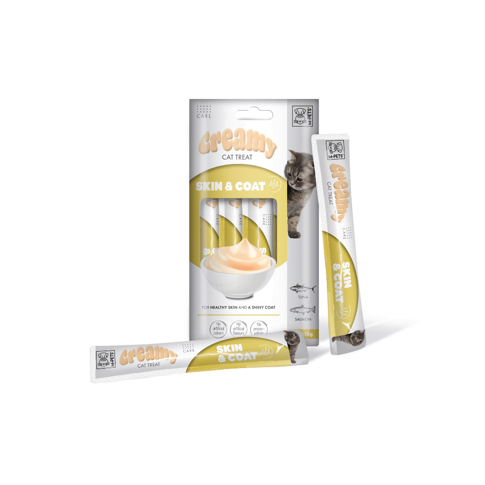 שלוק קרמי לחתול בטעם טונה וסלמון לפרווה ולעור 60 גרם M-PETS